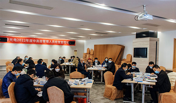2022年2月25日為期一天的亞泰光電2022年度中高層管理人員企業經營管理培訓營取得圓滿成功,參訓對象為公司中高層管理人員及部分骨干人員。鑒于上一期企業經營管理沙盤模擬培訓取得的良好效果及學員們的高度認可,大家意猶未盡,本次培訓我們再次有幸邀請到了具有豐富授課、實踐經驗的李焱老師為大家授課。