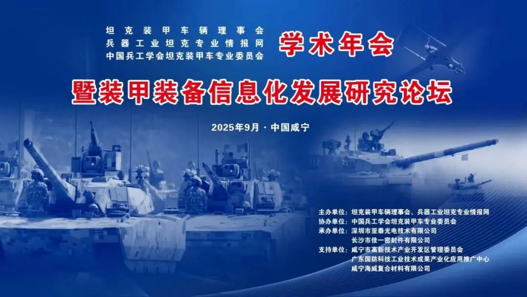 由坦克裝甲車輛理事會、兵器工業(yè)坦克專業(yè)情報網(wǎng)主辦,深圳市亞泰光電技術(shù)有限公司承辦,并得到咸寧市政府大力支持的"2025年坦克裝甲車輛學術(shù)年會暨裝甲裝備信息化發(fā)展研究論壇"于9月17日至19日在湖北咸寧華信大酒店成功舉辦。 本次會議以"裝甲裝備信息化發(fā)展"為主題,匯聚行業(yè)權(quán)威專家與領(lǐng)先企業(yè),共同探討陸戰(zhàn)裝備智能化轉(zhuǎn)型之路。