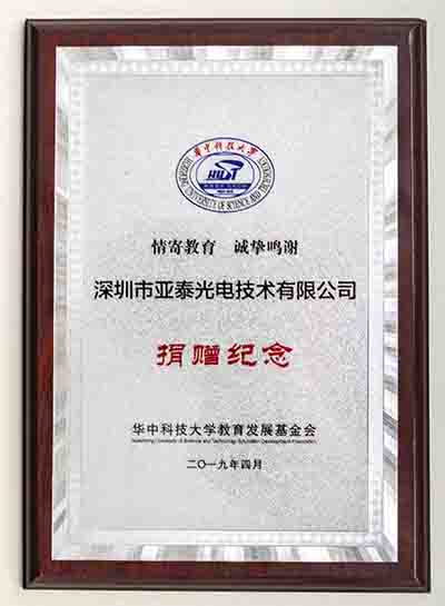 捐贈(zèng)儀式在與會(huì)嘉賓的陳陳掌聲中熱列進(jìn)行,各愛(ài)心企業(yè)回報(bào)母校、回報(bào)社會(huì)的熱情真真切切,十余年來(lái),亞泰光電在自身發(fā)展的同時(shí),始終沒(méi)有忘記社會(huì)責(zé)任,把關(guān)心、教育、回饋社會(huì)當(dāng)作企業(yè)應(yīng)盡的義務(wù),積極支持華中科技大船海學(xué)院的建設(shè)與發(fā)展,公司向華科大船海學(xué)院捐贈(zèng)十萬(wàn)元設(shè)立“亞泰光電金創(chuàng)獎(jiǎng)學(xué)金”,在捐贈(zèng)儀式上亞泰光電鄭總說(shuō)道:自己現(xiàn)在取得的進(jìn)步離不開(kāi)母校的培養(yǎng),在華科大度過(guò)了人生中最美好的青春年華,讓我收獲了一生當(dāng)中最寶貴的知識(shí)財(cái)富,希望能用自己的力量回饋母校,期望船海學(xué)院不斷培養(yǎng)優(yōu)秀畢業(yè)生,為國(guó)家、社會(huì)和學(xué)校建設(shè)添磚加瓦;亞泰光電今后將一始既往的支持學(xué)院的人才建設(shè)。懷念、感謝、展望!