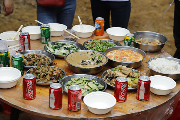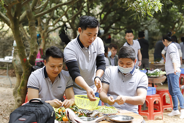 中午時(shí)分,年會開始了吃貨環(huán)節(jié),大家自己動(dòng)手、豐衣足食,各團(tuán)隊(duì)將自帶的食材及酒水、飲料等歸集一起準(zhǔn)備各自小組的午餐,各組隊(duì)成員有的切菜、有的洗菜,有的拾材,有的炒菜,一盤盤香噴噴、美味可口的家常菜西紅柿炒蛋、虎皮尖椒、年年有魚、肉沫茄子等美味可口的菜肴很快就做好并迅速被一掃而光,其樂融融,吃得好、喝得好,玩得好,好不熱鬧。