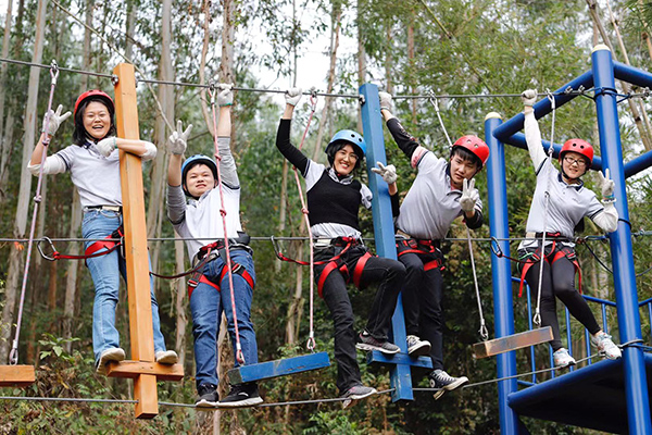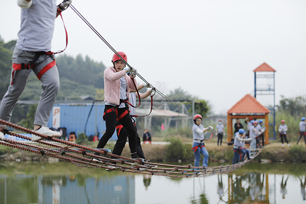 野炊結(jié)束午間休息后,年會進(jìn)入到下半場,下午兩點(diǎn)開始,所有隊(duì)員在教練的指導(dǎo)下抖擻精神、重新整裝再出發(fā),開始叢林穿越、高空溜索、飛奪瀘定橋等項(xiàng)目,隨著高空溜索、飛奪瀘定橋等項(xiàng)目的展開,各個(gè)小組發(fā)揮各自的優(yōu)勢努力完成每一個(gè)項(xiàng)目,每個(gè)項(xiàng)目的進(jìn)行和完成極大的鍛煉了團(tuán)隊(duì)成員的堅(jiān)強(qiáng)意志、增強(qiáng)了大家的團(tuán)隊(duì)凝聚力和整體向心力,同時(shí)每一個(gè)人也感受到了團(tuán)隊(duì)合作與溝通的重要性。