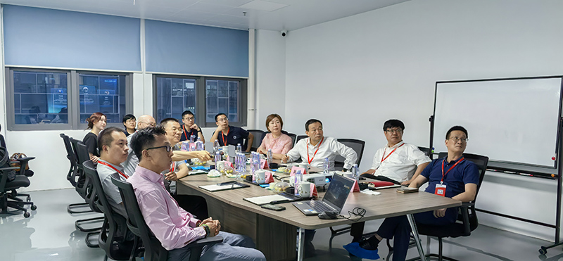 參觀結束后,雙方在會議室進行了熱烈、坦誠、深入的交流。會上,鄭總再次感謝俞大鵬院士一行的到訪,并表達了亞泰光電持續加強技術研發的決心,致力于為客戶提供更優質的產品和服務。