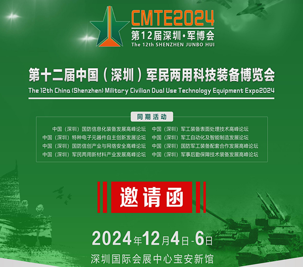 2024 第十二屆中國(深圳)軍民兩用科技裝備博覽會(簡稱:深圳·軍博會)將于 2024 年 12 月 4 日-6 日在中國·深圳國際會展中心盛大舉行。深圳軍博會在國家國防科技工業局、深圳市委軍民融合發展委員會辦公室的指導下,由中國和平利用軍工技術協會、深圳國防科技工業協會等單位主辦,本次博覽會以“搭建供需對接平臺 促進軍民科技發展”為主題,提供展示我國國防現代化建設最前沿的裝備、加強軍民合作配套、實現信息溝通、技術交流、成果展示和產品洽談的供需平臺。